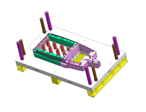 本公司設計的修飾模具,采用了全包圍式的結構設計,通過下模定位,上模沖剪的結構,實現了生產過程的穩(wěn)定和精度要求;
