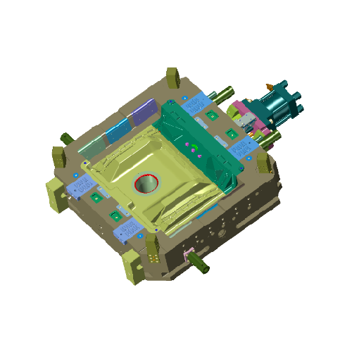 前模暗抽行位且角度較大、產(chǎn)品沙孔要求較嚴格,因前模孔位的投影面積較大,如何保證在壓鑄機器增壓時行位不退位是此項目的技術(shù)難點。